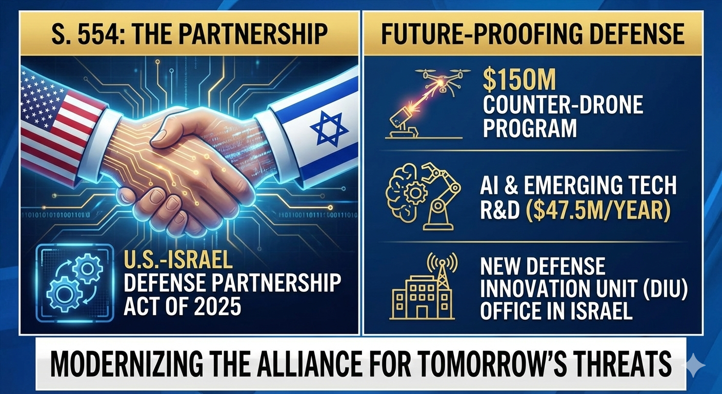 Traditional military aid is no longer enough to counter modern threats like autonomous drones and cyber warfare. S. 554 (The United States-Israel Defense Partnership Act of 2025) aims to "future-proof" our cooperation by focusing on the next generation of defense technology.